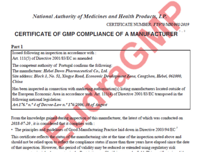 河北道恩药业获得无菌注射剂生产线欧盟GMP证书