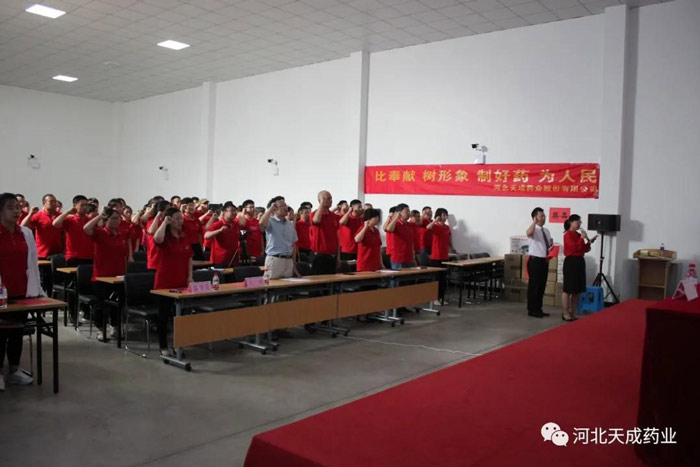 党总支副书记王颢发表《永远跟党走,启程新航程》主题讲话,他在讲话中指出:在纪念建党100周年之际,开展评选优秀共产党员和优秀党务工作者活动,展示新时期共产党人的良好形象,对于继承和发扬党的优良传统和作风,树立典型,弘扬正气,振奋精神,进一步增强公司党组织的创造力、凝聚力和战斗力,充分发挥共产党员的先锋模范作用,激励全公司广大共产党员在深入实施公司“要么第一、要么唯一”的战略,践行“制好药,为人民”的经营宗旨,推进天成药业高质量发展,促进天成人在生产经营工作中奋勇争先,建功立业,具有十分重要的意义。