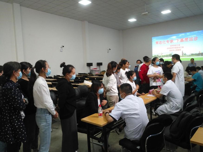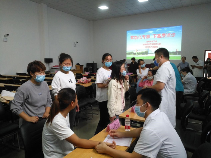 活动开始,沧州市总工会田莹副科长发表讲话,她指出,沧州市总工会通过建设“职工健康生活室”,联合沧州市人民医院定期下基层开展健康大课堂、义诊等活动,为职工送去科学的营养保健指导,对患病的职工提出相应的治疗建议,既满足了职工健康的新需求,又使之成为了关心关爱职工健康的新举措。她强调“常态化专家下基层巡诊”活动将会持续搞下去,让职工参与度更高,惠及更多的职工。