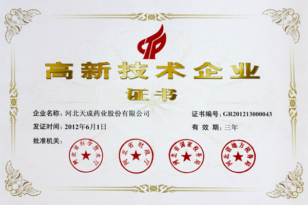 高新技术企业证书